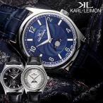 カルレイモン KARL-LEIMON 日本製 腕時計 クラシック ムーンフェイズ メンズ 革ベルト レザー シルバー