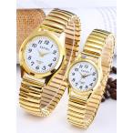 腕時計 ペアウォッチ カップル用クォーツ腕時計2個セット、カジュアル アラビア数字 ファッション エラスティックストラップ メンズ
