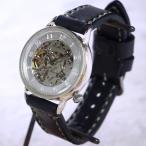 手作り腕時計 ハンドメイド 渡辺工房 自動巻き 裏スケルトン アラビア数字刻印 メンズシルバー 手縫いベルト/メンズ ペア ペアウォッチ お揃い