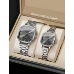 腕時計 ペアウォッチ スチールベルトカップルウォッチ2個セット、ダイアルに夜光機能付き、デイリーウェア、ビジネス、レジャーに適した