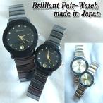 日本製ブリリアントペアウォッチ (腕時計 メンズ レディース 2本セット カットガラス 5気圧防水 カレンダー付 電池式クォーツ ドレスウォッチ上品)