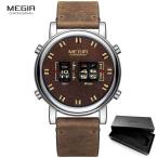 腕時計 メンズ デジタル 男性 レロジオ ドラムローラー ブラウンシルバー