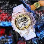 4 スポーツ腕時計 LED デジタル 腕時計 時計 ミリタリー 自転車 スポーツ アウトドア キャンプ 男女兼用 ランニング アクリルケース ホワイト
