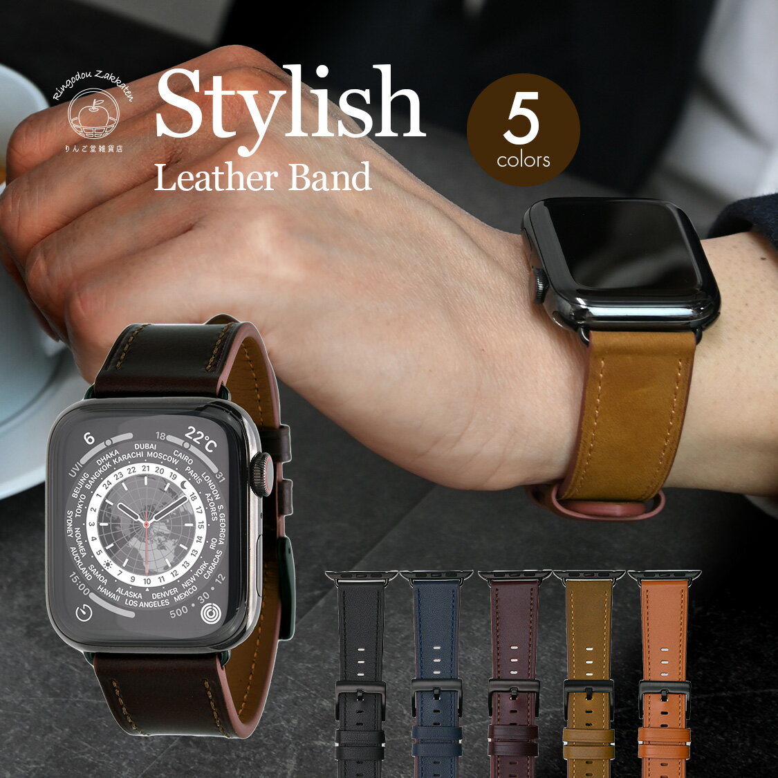 【期間中10%OFFクーポン】【シリーズ11・SE3対応】アップルウォッチバンド メンズ レザー 本革 高級 おしゃれ かっこいい ビジネス ブラウン ブラック 【全5色】Apple Watch 10 9 8 7 SE2 6 5 4 3 ULTRA 対応 38mm 40mm 41mm 42mm 44 45 46 49 @スタイリッシュレザーバンド