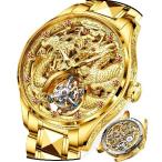 【並行輸入品】 OUPINKEメンズ腕時計腕時計-ラグジュアリービジネススケルトンウォッチ-サファイアクリスタル機械式ムーブメントゴールド-トゥールビヨン, トゥ