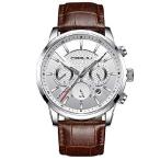【並行輸入品】 CRRJU メンズ ビジネス カジュアル クロノグラフ クォーツ 防水 腕時計 ブラックレザーストラップ レザーシルバーホワイト。
