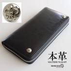 レザーウォレット メンズ コンチョ付き 長財布 本革 フレアコンチョ 百合の紋章 ダブル 大容量 シンプル ビジネス カジュアル