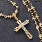 ネックレス メンズ クロス 十字架 ダイヤモンド 18金 K18 18K イエローゴールド ペンダント シンプル ユニセックス 50cm チェーン 30代 40代 50代 爆買
