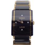 ラドー ジュビリー クォーツ レディース 腕時計 セラミック×ゴールドGP 4Pダイヤ入り黒文字盤 153.0283.3N【いおき質店】