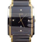 ラドー インテグラル クォーツ メンズ 腕時計 セラミック×ゴールドGP 4Pダイヤ入り黒文字盤 212.0204.3【いおき質店】