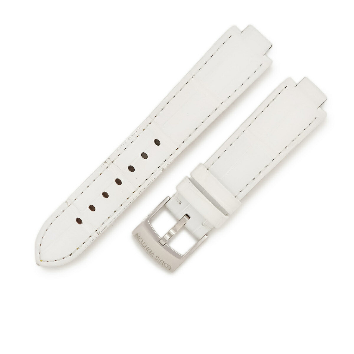 ルイヴィトン LOUIS VUITTON 腕時計パーツ 純正 クロコバンド クロコダイル ステンレススチール ホワイト 替え ベルト 純正SS製尾錠付き 18mm ホワイト 白 シャイン 艶有り 【中古】