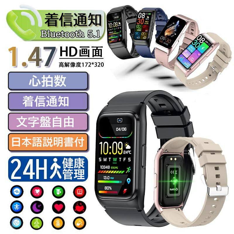 【先着50%OFFクーポン配布中】【選べる替えベルト&収納ケース特典付】2025最新型 スマートウォッチ 日本製センサー 着信通知 24時間健康管理 心拍数 iPhone Android対応 1.47インチ長方形画面 レディース メンズ Bluetooth 女性 文字盤自由 高齢者 プレゼント 日本語説明書