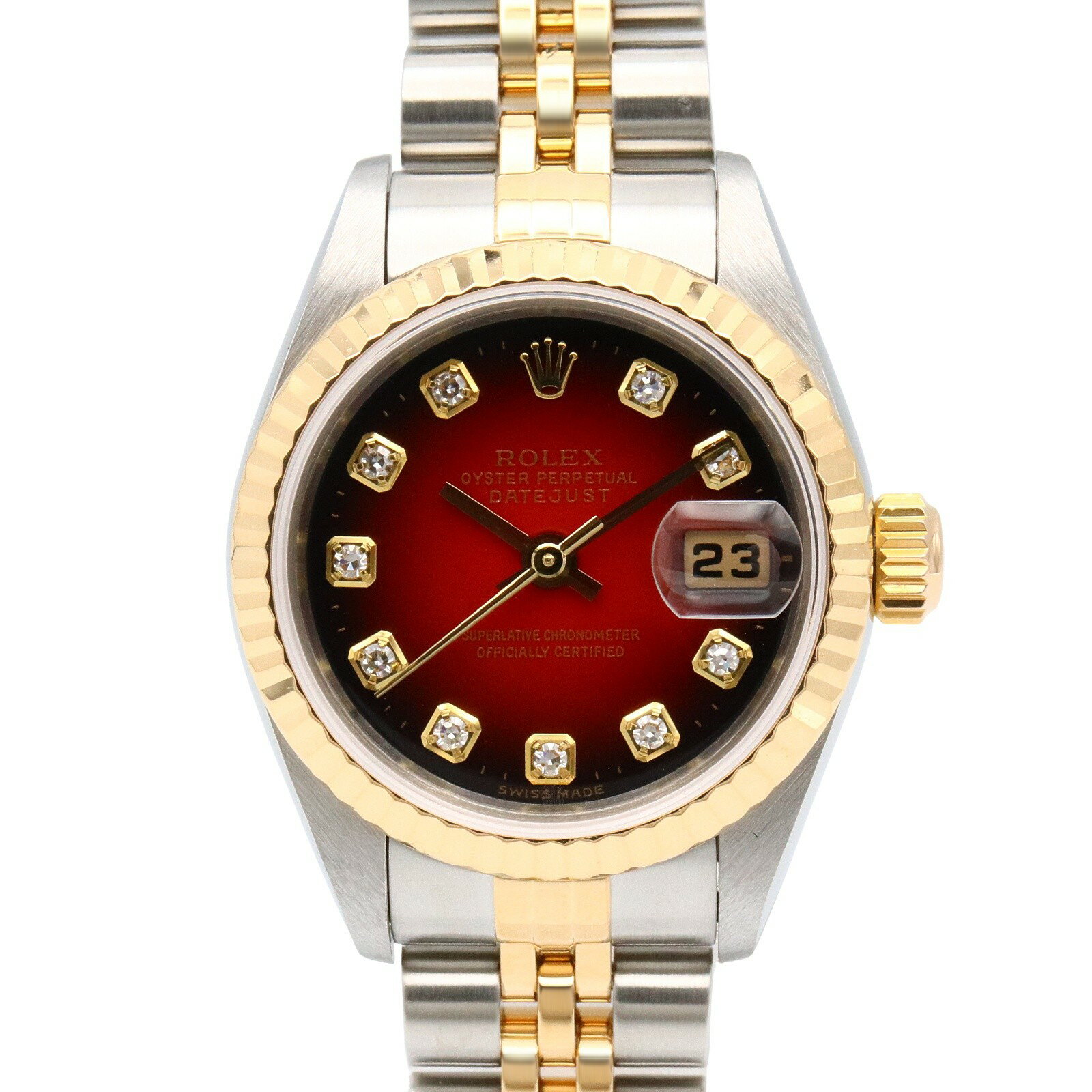 ◆全品5%OFFクーポン対象◆ロレックス ROLEX デイトジャスト 10Pダイヤ Y番 腕時計 時計 K18(イエローゴールド) ステンレススチール ダイヤモンド メンズ レッド系 レッドグラ/新ダイヤ 79173G 【中古】