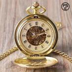 懐中時計 フルゴールド スケルトン 機械式 ダブルオープン KNK(株) アンティーク風 手巻き/自動巻き風 コレクション ギフト メンズ レディース おしゃれ 小物