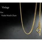 K22 ヴィンテージ 懐中時計用 喜平2面カット デザイン イエローゴールド チェーン 24g 34.8cm クリップ金具1/引き輪金具2 HKPW13