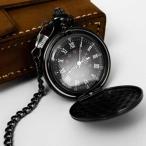 ローマ数字 シンプル 懐中時計 チェーン付き クォーツ アナログ時計 ブラック 新品 送料無料