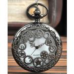 【黒の懐中時計】 アンティーク 懐中時計 【収納ポーチ + 専用箱 付き】レトロ ブラック クローム