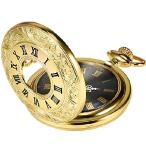【並行輸入品】 Hicarer ヴィンテージ懐中時計 スチールメンズウォッチ チェーン付き, ゴールド, クラシック