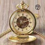 懐中時計 フルゴールド スケルトン 機械式ダブルオープンピークル 男の魅力を演出 レトロで高級感 プレゼントにも 大人のアクセサリーとして映える