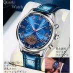 腕時計 時計 ギリシャ文字 メンズ腕時計 アナログ メンズ クォーツ 高品質 レザー ベルト バンド 革 ファッション時計 ウォッチ ブルー ゴールド