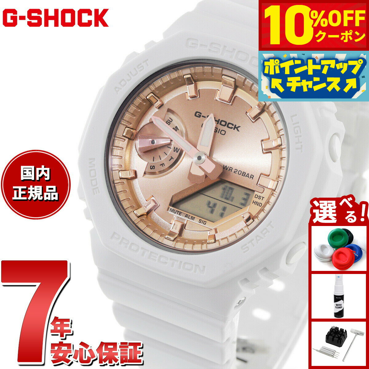 【10%OFFクーポンは21日9:59迄!】G-SHOCK プチサイズ メタリックインデックス GMA-P2100M-7AJF レディース 腕時計 電池式 アナデジ オクタゴン 樹脂バンド ホワイト 国内正規品 カシオ