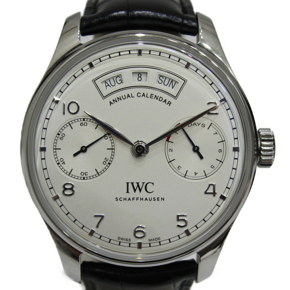 【ギャラ有】IWC ポルトギーゼ アニュアルカレンダー IW503501 自動巻き スモールセコンド パワーリザーブ SS 革ベルト ホワイト メンズ 腕時計【中古】松山朝生田店