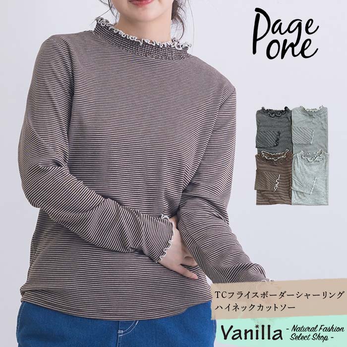 PUTI PRICE プチプライス TCフライスボーダーシャーリングハイネックカットソー M/L/LL