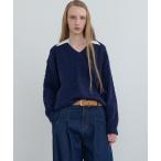 ニット セーター 「NYLON JP 1月号 掲載」Kijun/キジュン Shirt Collar V-Neck Knit メリノウール ケーブル編み