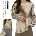 リラックス お洒落 ボーダー 秋 韓国 お洒落 レディース トップス カットソー ゆるっと 春 ロンT 長袖tシャツ ロングTシャツ シンプル 春秋服