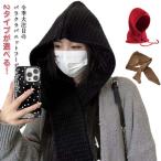 2タイプが選べる! バラクラバ ニット 帽子 かわいい ニット帽 レディース 韓国 おしゃれ くすみカラー マフラー フード付き ネックウォーマー