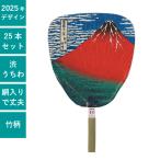 網入 渋うちわ 25本 セット 丈夫 長持ち 団扇 うちわ 竹製 居酒屋 飲食店 業務用 焼鳥 炭火焼 和 アウトドア イベント | F6113 北斎・赤富士