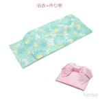 レース 浴衣 3点セット ゆかた しわ兵児帯 浴衣スリップ 16023 ミントグリーン 紫 くすみピンク 白 上品 コーディネート済