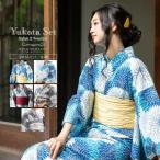 浴衣セット レディース 大人 浴衣3点セット(浴衣+帯+おまかせ下駄)「ブルー丸菊・グレー丸菊」大人柄 可愛い系 カジュアル レトロモダン(メール便不可)