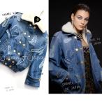 シャネル ジャケット コート CHANEL 144万 2019 ブルーデニム ボア襟 軽くて暖か アウター CC ココマーク ランウェイ 貴重 超美品 36 38