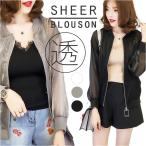 シアー ブルゾン 通販 アウター ジャケット 羽織 羽織り 上着 長袖 ジャンパー ゆったり ショート丈 通勤 通学 透け感 光沢感 冷房対策 カジュアル 春 夏 シアー