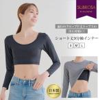 日本製 クロップド丈 ショート丈 9分袖 インナー 長袖 Uネック アウター 響かない レディース 女性用 インナーシャツ おしゃれ 春 秋 冬 無地 シンプル mail