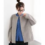 ノーカラーコート コート ニットビーバーノーカラーミドルコート レディース