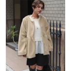 ノーカラーコート コート ペプラムギャザーデザインボアアウター レディース