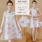 チャイナドレス ミニ チャイナワンピース ノースリーブ チャイナ風 アオザイ 重ね着 チャイナ服 二次会 チーパオ 立ち襟 ドレス コスプレ 二次会