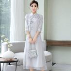 ワンピース レディース ロング丈 チャイナ風ワンピース チャイナドレス チャイナ服 ドレスワンピース 花柄 フレアワンピース Aライン 着痩せ ゆったり 結婚式