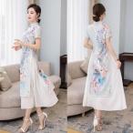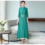 ワンピース レディース ロング丈 チャイナ風ワンピース チャイナドレス チャイナ服 ドレスワンピース 花柄 フレアワンピース Aライン 着痩せ