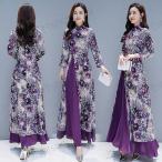 ワンピース チャイナ服 アオザイ 民族衣装風 古典 レディース チーパオ ロング チャイナドレス 民族風 30代 40代 パーティー 結婚式 演出服