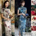チャイナドレス ロング丈 チャイナ風ワンピース コスプレ衣装 チャイナドレス ワンピース チャイナ服 アオザイ ドレスワンピース 花柄 7分袖