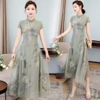 チャイナドレス風ワンピース ロング丈 半袖 アオザイ風ワンピース 夏 マキシチャイナ風ワンピース チャイナドレス 2点セット ワンピース 40代
