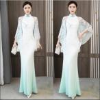 チャイナドレス ロング 花柄 ワンピース フォーマル 長袖 チャイナドレス風ワンピース 長袖 アオザイ チャイナドレス 発表会 ドレス ロング