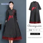 チャイナドレス チャイナ服 ★chaiはポイント最大3倍★ ワンピース 花柄 長袖 上品 ブラック チャイナ風ワンピ チーパオ アオザイ zl460