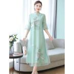 チャイナドレス風ワンピース ロング丈 半袖 アオザイ風ワンピース 夏 マキシチャイナ風ワンピース チャイナドレス 2点セット ワンピース 40代