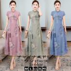 チャイナドレス風ワンピース ロング丈 半袖 アオザイ風ワンピース 夏 マキシチャイナ風ワンピース チャイナドレス ワンピース 40代 50代 きれいめ