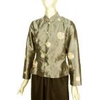 アオザイブラウス 刺繍 シルク混 長袖 グレー系 きゃら オリジナル