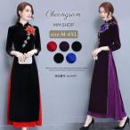 チャイナドレス長袖チャイナドレス風ワンピースロング秋冬ベルベットアオザイロングドレススリット大きサイズレディース忘年会披露宴コスプレ衣装
